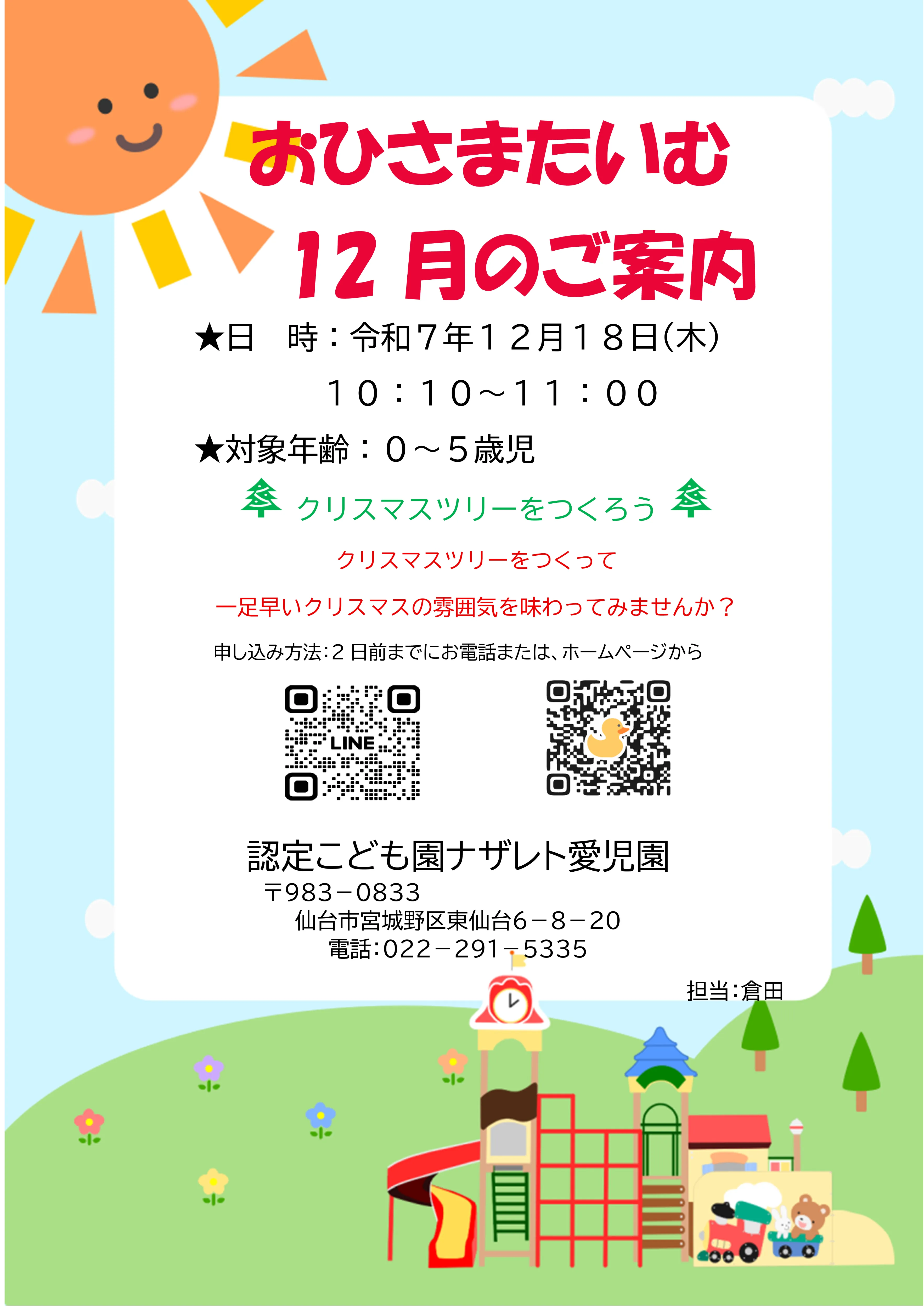 愛児園では子育て支援事業の一環として未就学児を対象に「おひさまたいむ」を行っております。